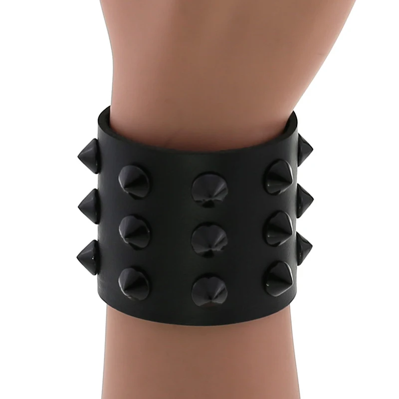 Браслет из кожи с шипами и заклёпками-гвоздиками Широкий Браслет-манжета в стиле панк, готика, рок, унисекс-браслет, модное Ювелирное Украшение из искусственной кожи для женщин и мужчин