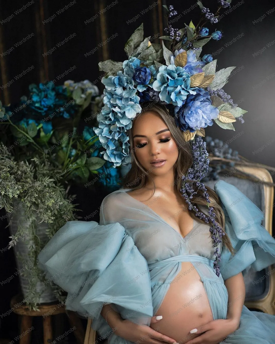 Очаровательные длинные фатиновые платья для беременных для фотосесс...