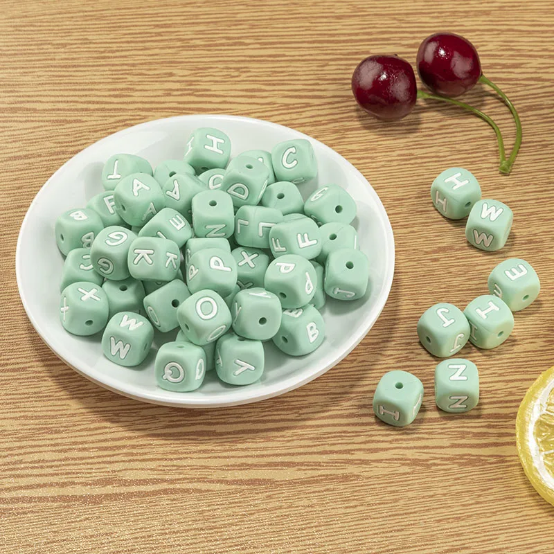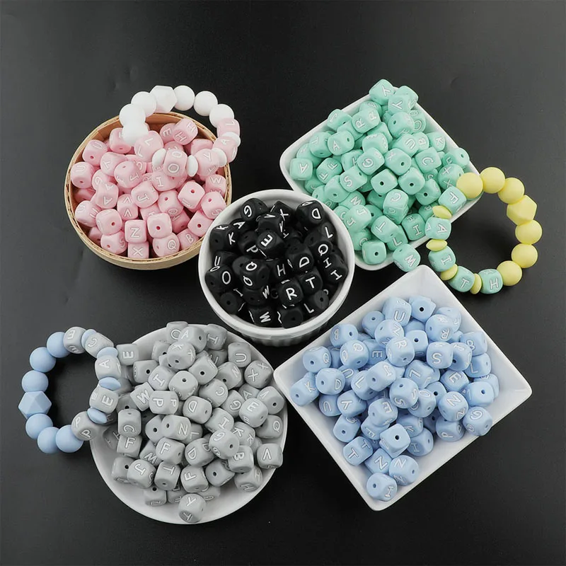 Item: 1000PCS English alphabet beads size:12mm weight:1.86g/pc color:pink/black/mint/greyblue Material: Silicone Item Shape: Square-shape Function: Creative Silicone Teether Baby Toy For Teething,Children's Favorite. Manufacturers Specially Design Teething Toys To Provide Maximum Relief While Giving Baby Something Safe And Fun To Play With. These Silicone Baby Toy Feature Soft,Textured Surfaces That Massage The Gums As Teeth Start To Come Through .