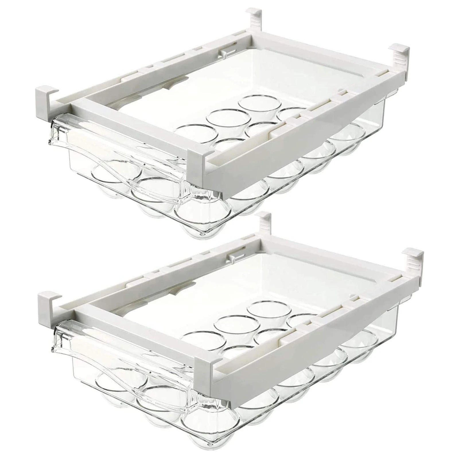 Ящик для хранения холодильника-корзина имеет 2 зажима для эффективного использования пространства в холодильнике, и полоску можно приклеить к перегородке холодильника, экономя место.