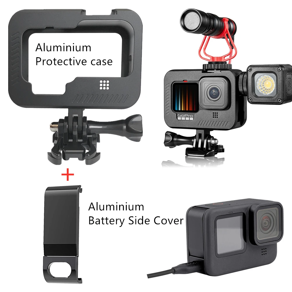 Защитный корпус с боковым интерфейсом аккумулятора, крышка для GoPro Hero 10 9, черные алюминиевые аксессуары для камеры, монтажная рамка