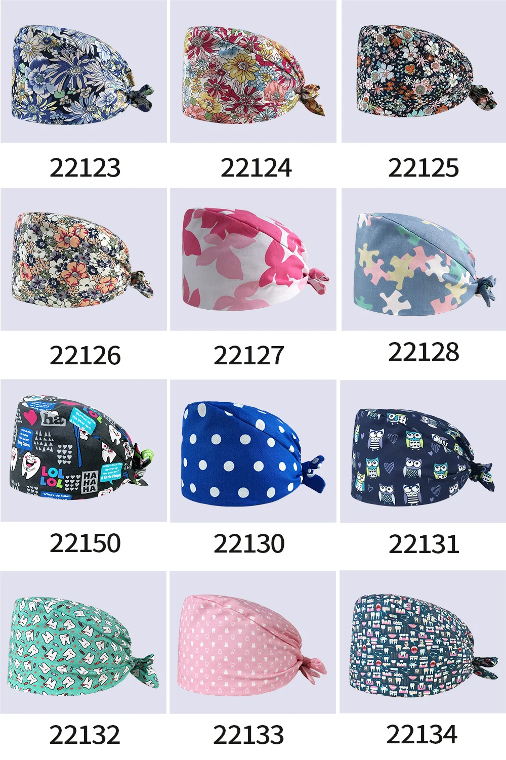 Шапка для медсестры с цветочным узором, регулируемая шапка с разным...
