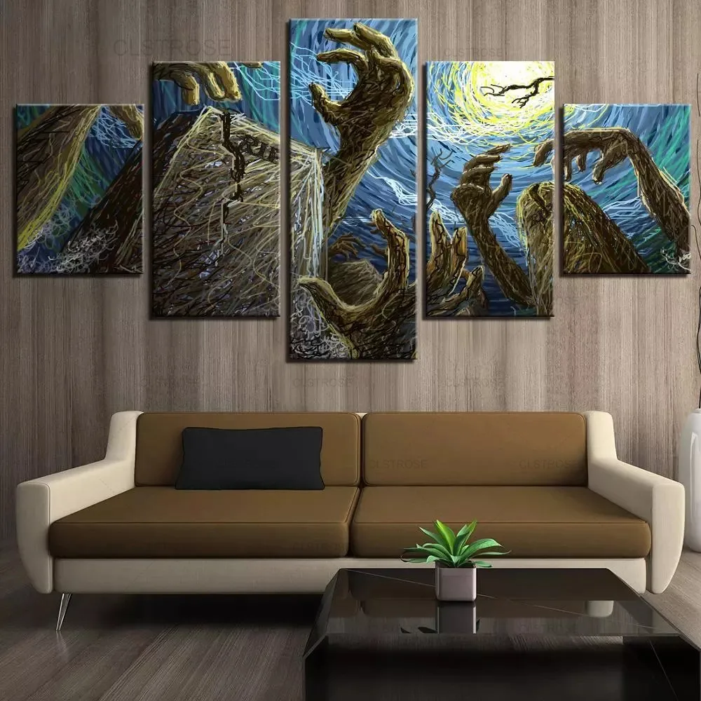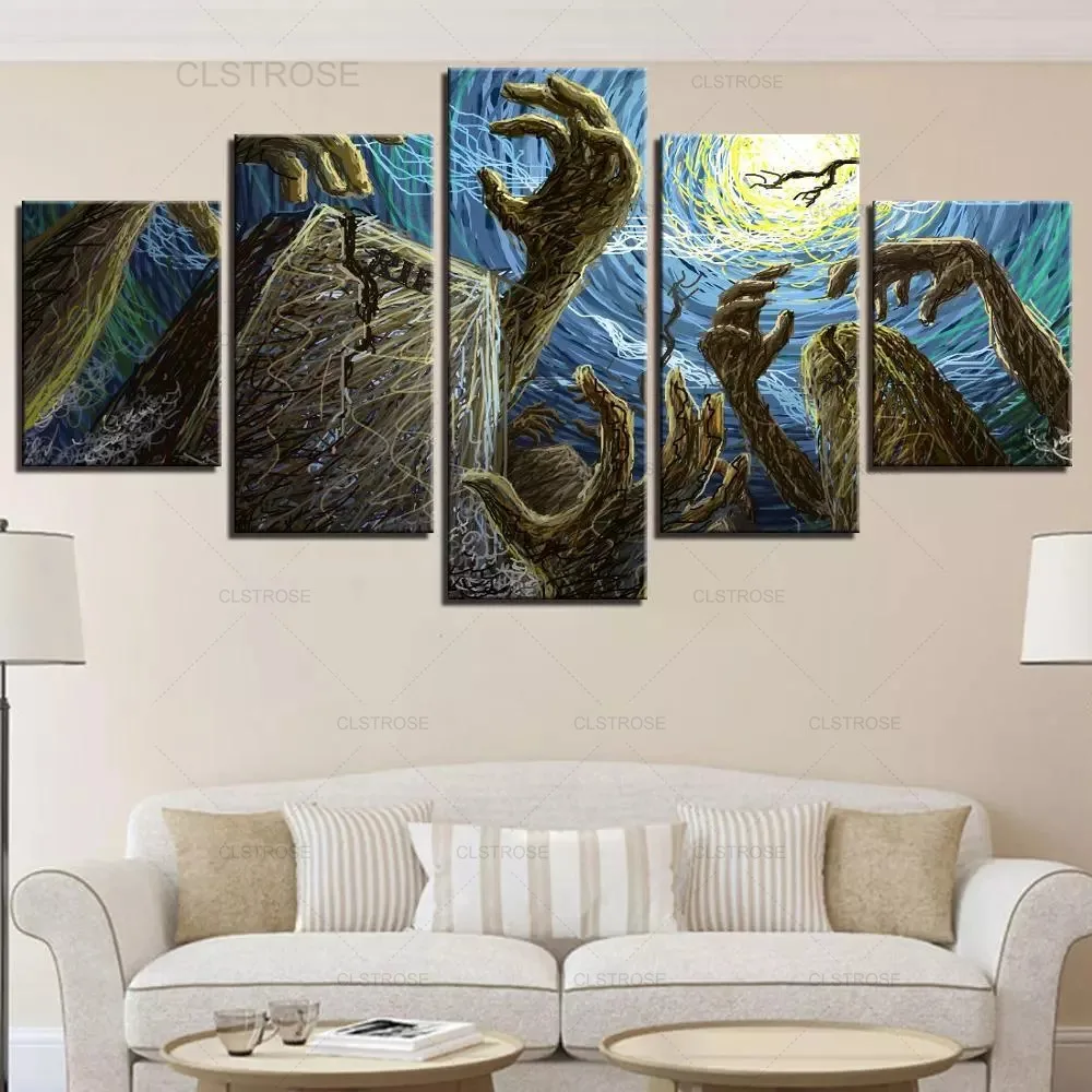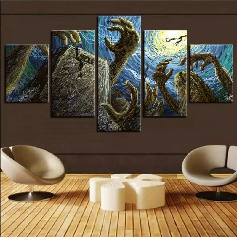 Хэллоуин, ужас, абстрактная рука, украшение для дома, настенная живопись, ночной демон, печать на холсте, 5 шт., Hd, без рамки, индивидуальный постер