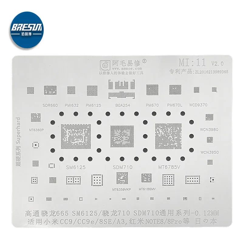 Оловянная посадочная сеть AMAOE Mi11 для Qualcomm Snapdragon 665xiaomi CC9E Redmi Note8SM6125SDM710ЦП, стальная сетка, оловянный посадочный инструмент