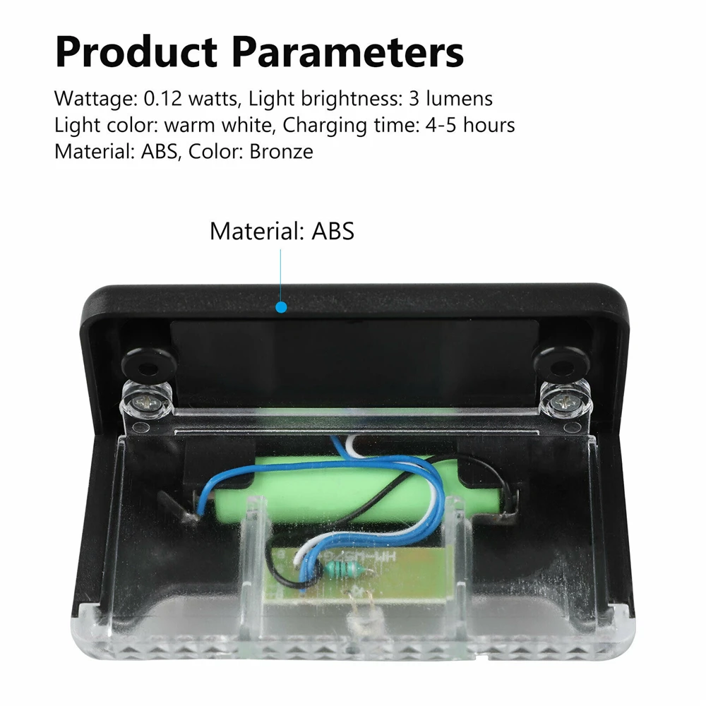 Особенность:100% новый товар высокого качества.Количество: 1/4/6/8 шт.Совершенно новый и высококачественныйЭти Энергоэффективные солнечные светильники с низким энергопотреблением добавят очаровательное декоративное сияние вашей подъездной дорожке, патио или клумбах. Они обязательны для каждого сада или двора.Включите лампу перед использованием.Заряжается от солнечных панелей под солнесветильник томАвтоматический датчик активируется в сумерках с автовыключателемИдеально подходит для зон, где нет обычного электроснабженияПодходит для дорожек/лестниц/ступеней/сада/двора/стен/дорожек/и т. д.Абсолютно без проводки и легко устанавливаетсяЗагорается до 8-10 часов при полной зарядкеМатериал: ABSПерезаряжаемая батарея: 1,2 V/1Pc 600mAh Ni-MHРазмеры: около 7,5x4,4x4,2 смЦвет светодиодный: Теплый/белый/RGB