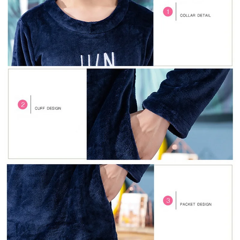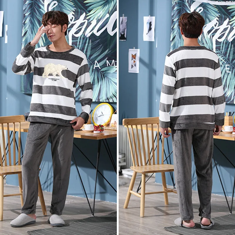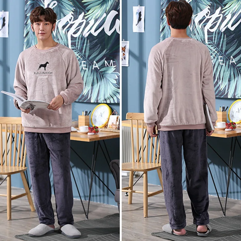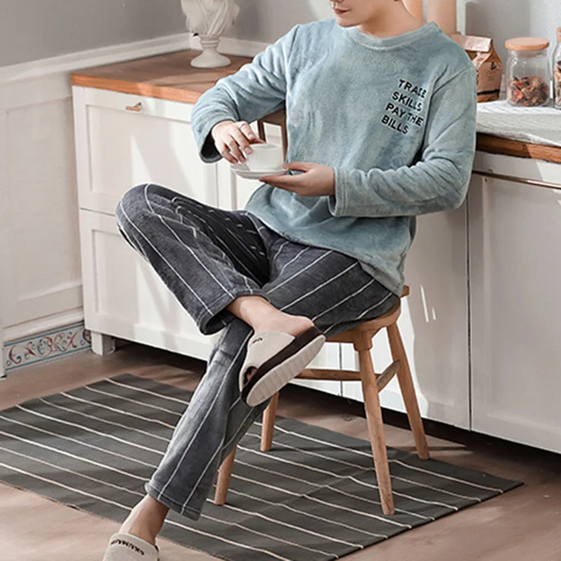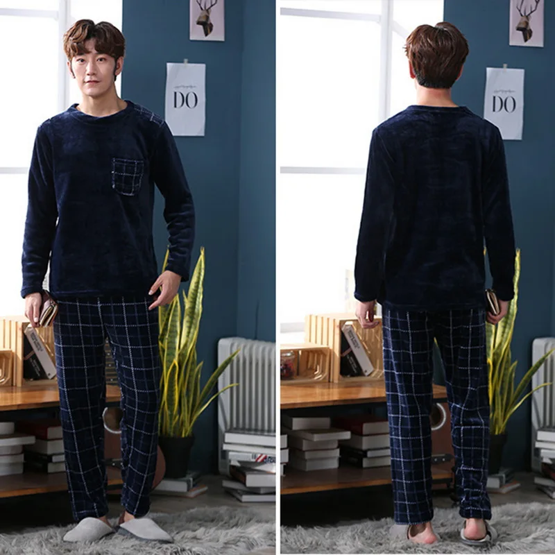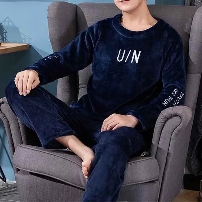 Комплект пижамный мужской, теплый фланелевый утепленный пижамный комплект, одежда для сна с длинным рукавом, топ и штаны, Повседневная Домашняя одежда, 2 предмета, Осень-зима