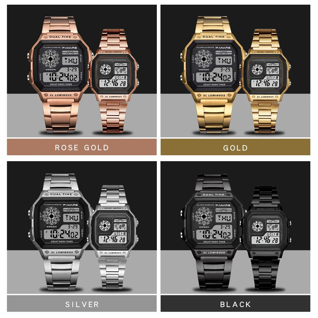 Модные мужские цифровые часы, панары из нержавеющей стали с ремешко...