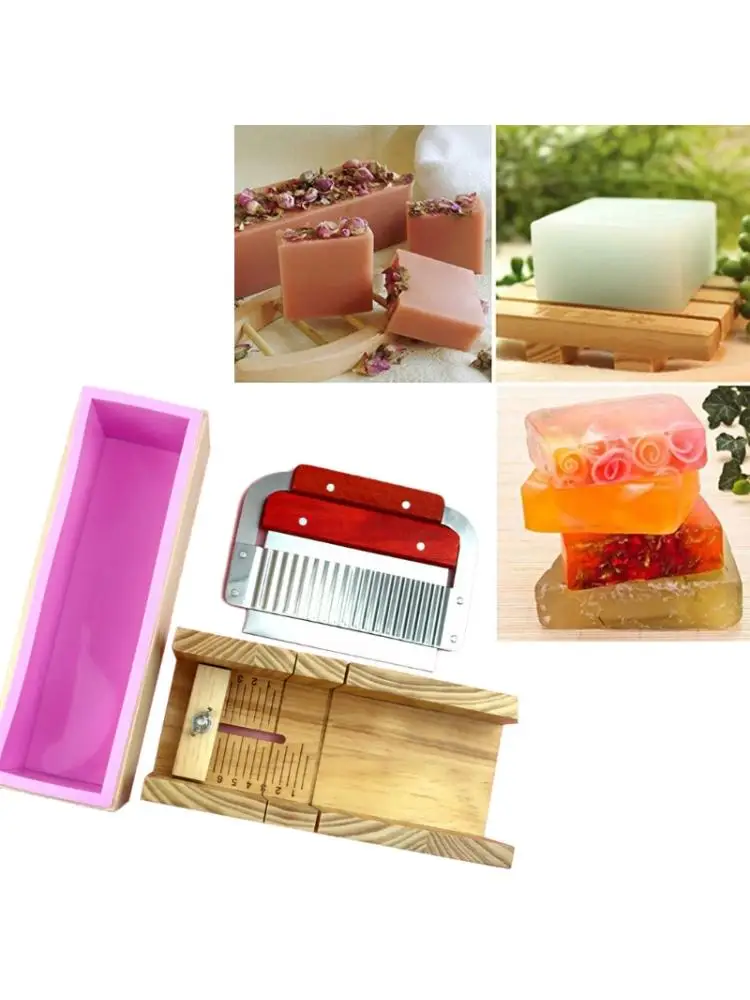 Деревянная форма кусок мыла и нож для мыла Набор c прямоугольная силиконовая форма с деревянной коробкой прямой и волнистый нож для мыла