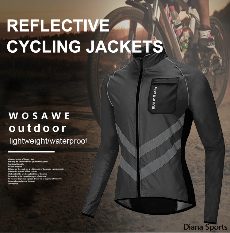 Куртка WOSAWE Мужская, черная, светоотражающая, водоотталкивающая, осенне-весенняя