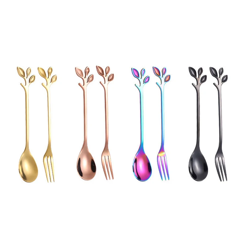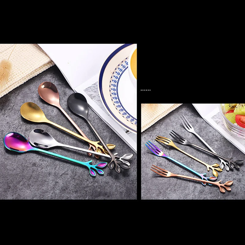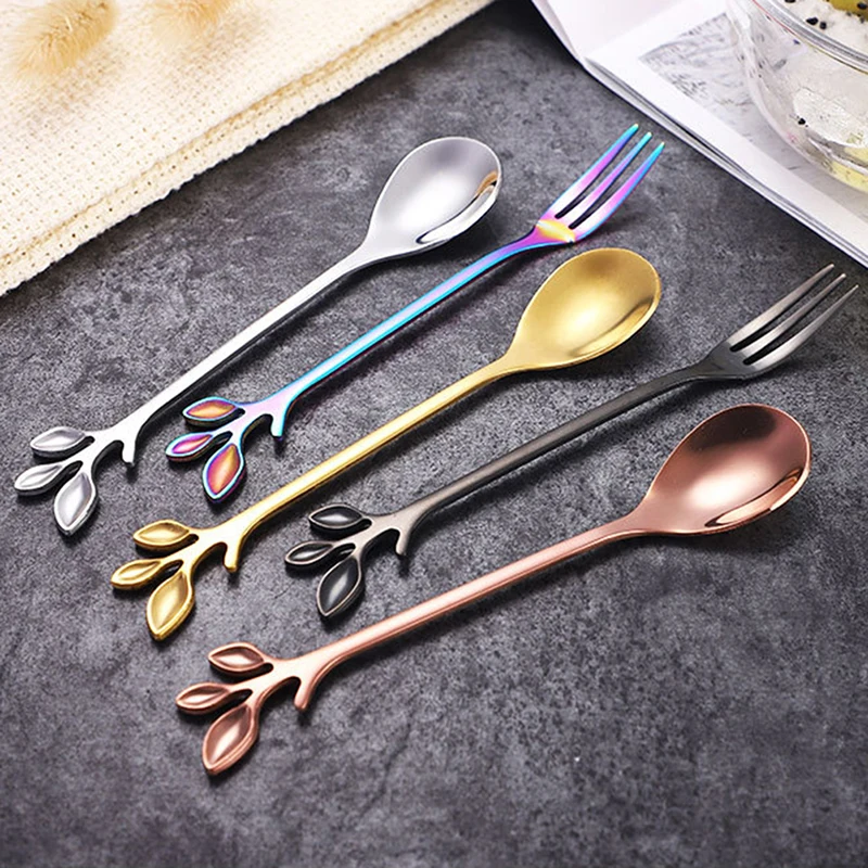 Нержавеющая сталь ложки в виде листьев вилка чайная и кофейная ложка ложки креативные инструменты для мороженого посуда кухонные гаджеты домашний декор