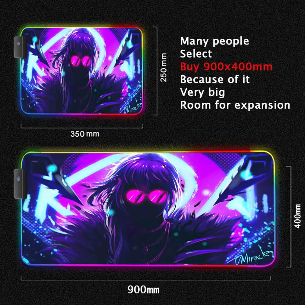 Большой светящийся коврик для мыши в стиле аниме, с подсветкой