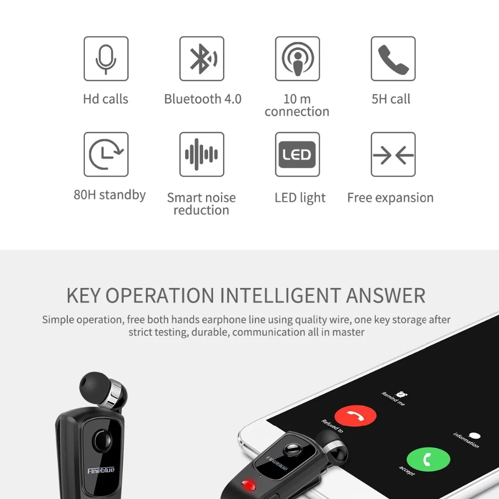 FINEBLUE F920 Беспроводные Bluetooth 4,0 наушники Телескопический Тип бизнес гарнитура с вызовами Вибрация напоминания клип для спорта бега