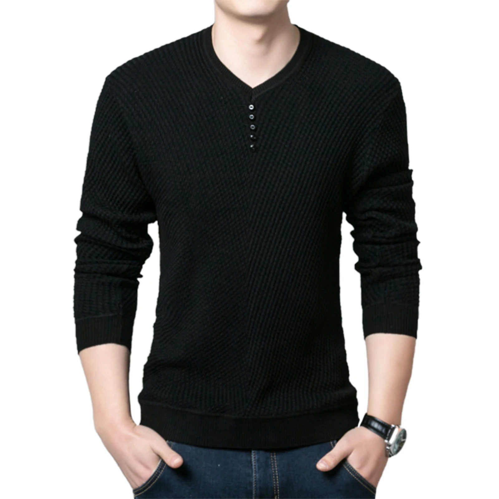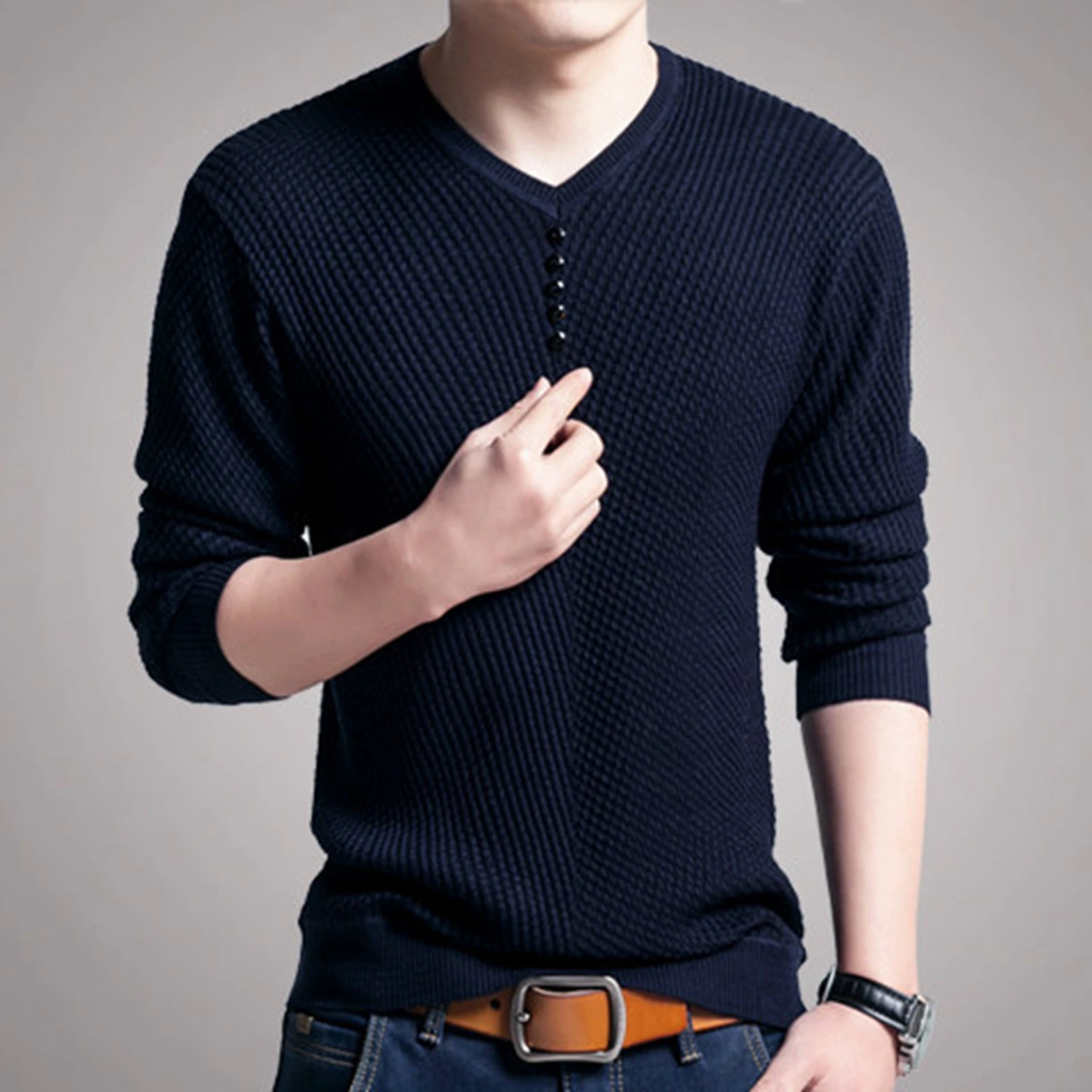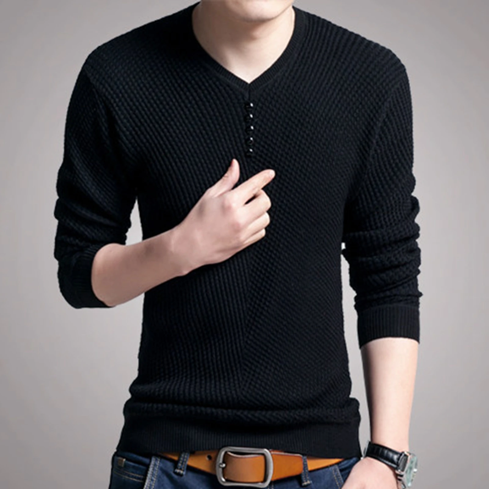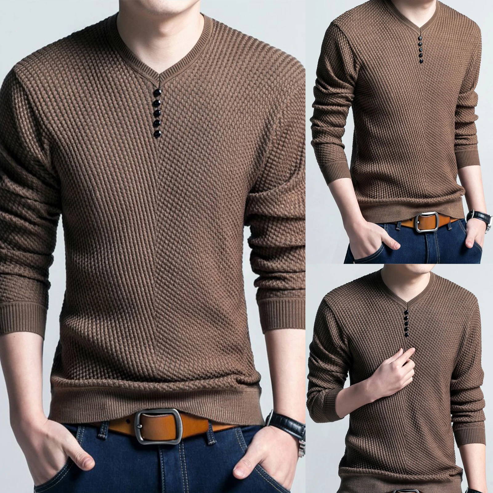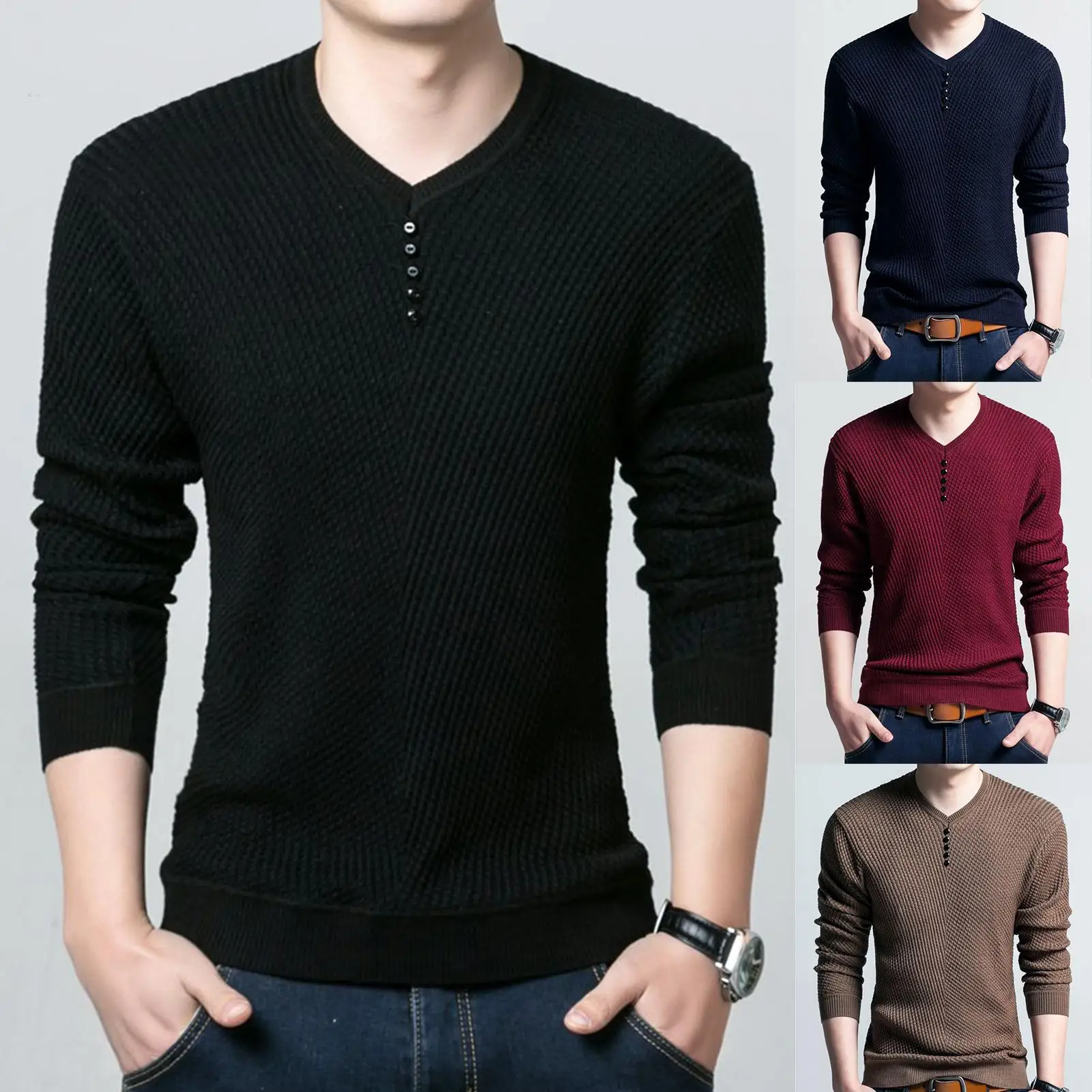 Для мужчин с длинным рукавом однотонные Цвет Кнопки Декор трикотажная одежда размера плюс свитер с пышным рукавом Для мужчин трикотажный пуловер или свитер Для мужчин Трикотаж 2020