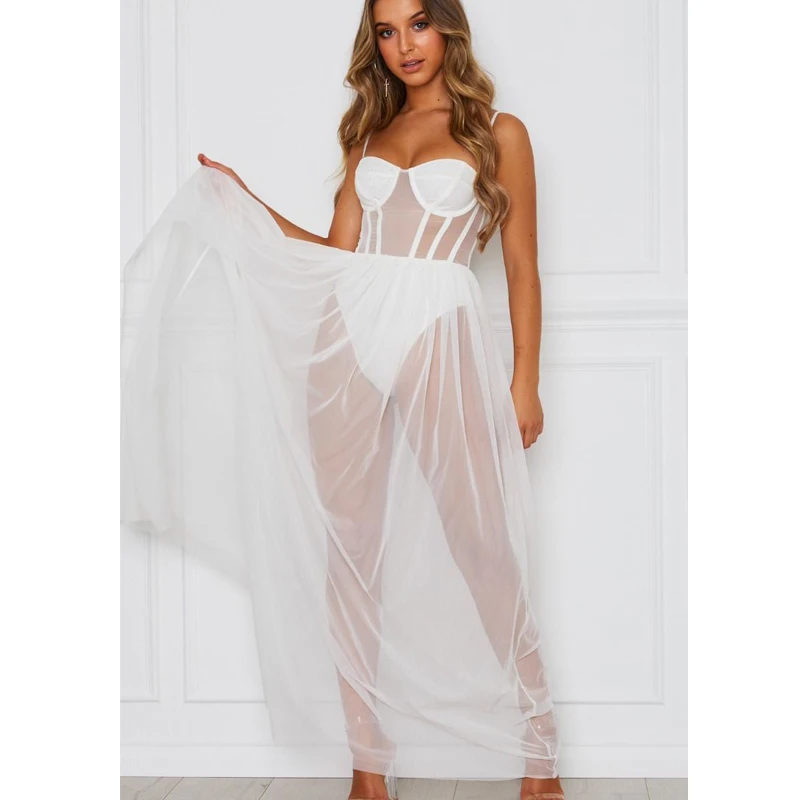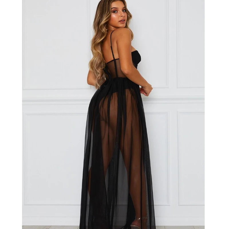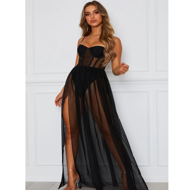 Сексуальное женское Сетчатое Прозрачное Бикини на бретельках, накидка, однотонное повседневное длинное платье, Летний Пляжный Сарафан
