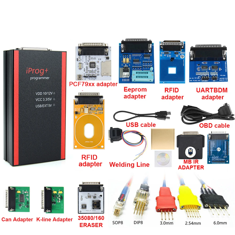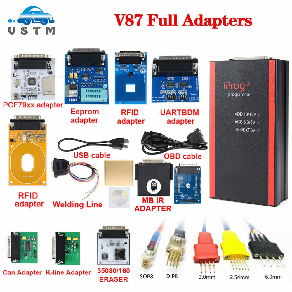 IPROG Pro V87 ECU ключевой программист Iprog + Поддержка IMMO автомобильное радио возврата технологии радиочастотной идентификации/ИК MB/фунт/фут/080/160/5 шт зонд адаптерами полный набор