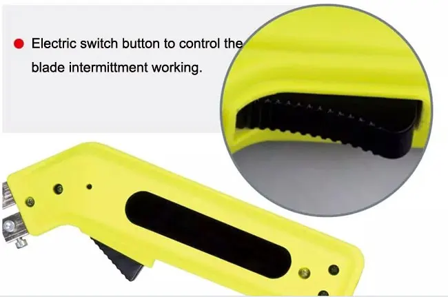Напряжение: 110 ± 10% /220 В± 10%Мощность: 250 ВтДлина провода: 3 мРазмеры: 24x4,5x3,5 смВес: 348 гОсобенность:• 1/4 минут прерывистой работы.• После резки никаких неровных краев.• Длительный срок службы и может работать непрерывно.• Намного легче и легко для доставки с низкой стоимостью перевозки.