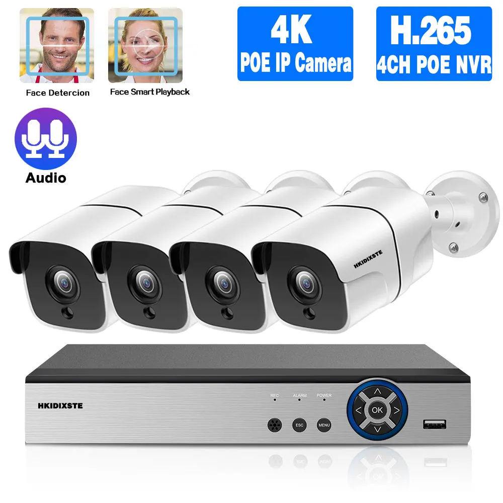 4 x HD POE IP 4K Крытый Открытый ИК дневное ночное видение Пуля Всепогодные камеры;