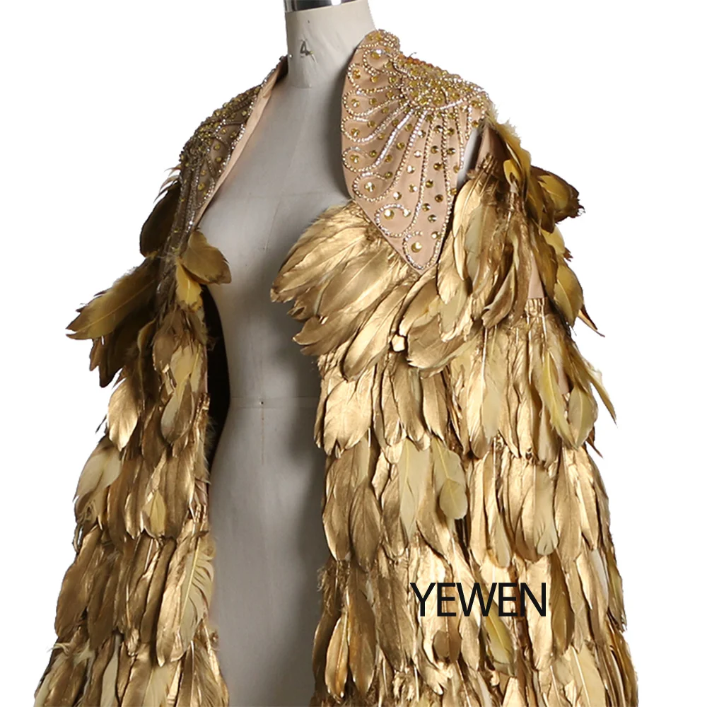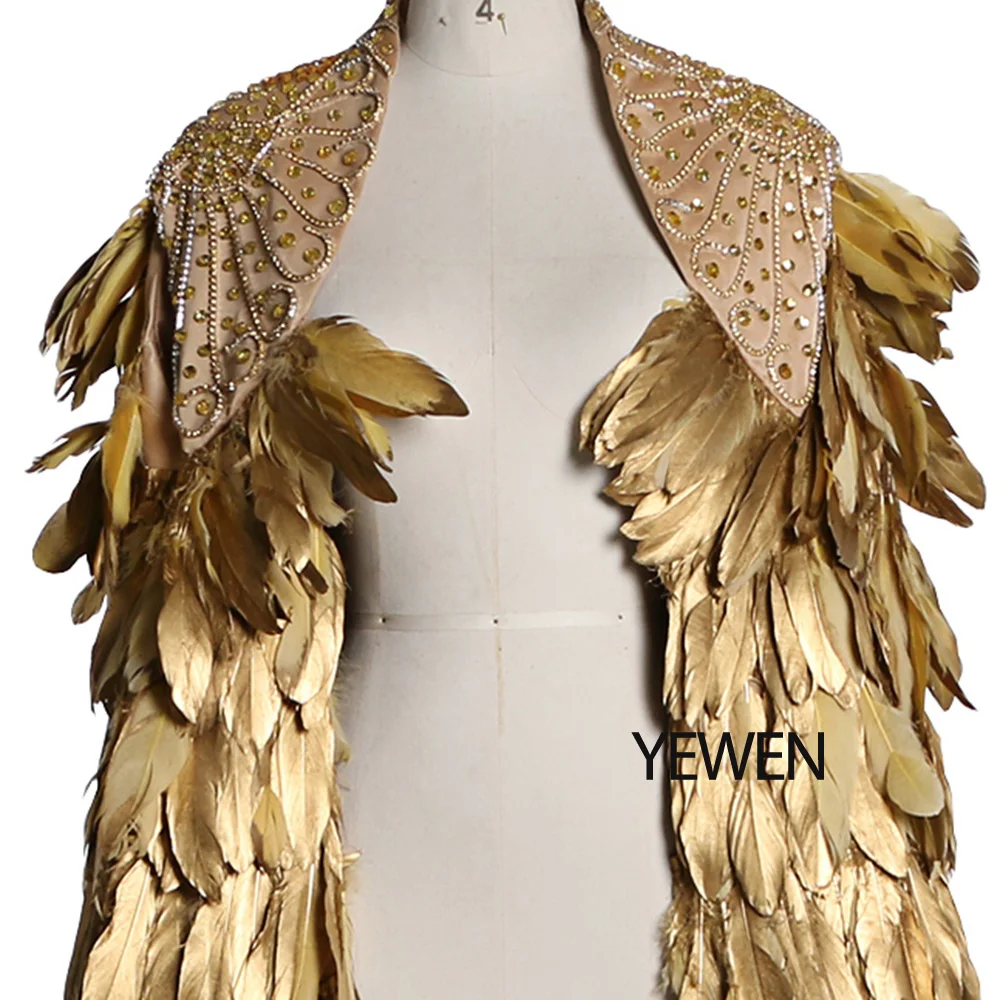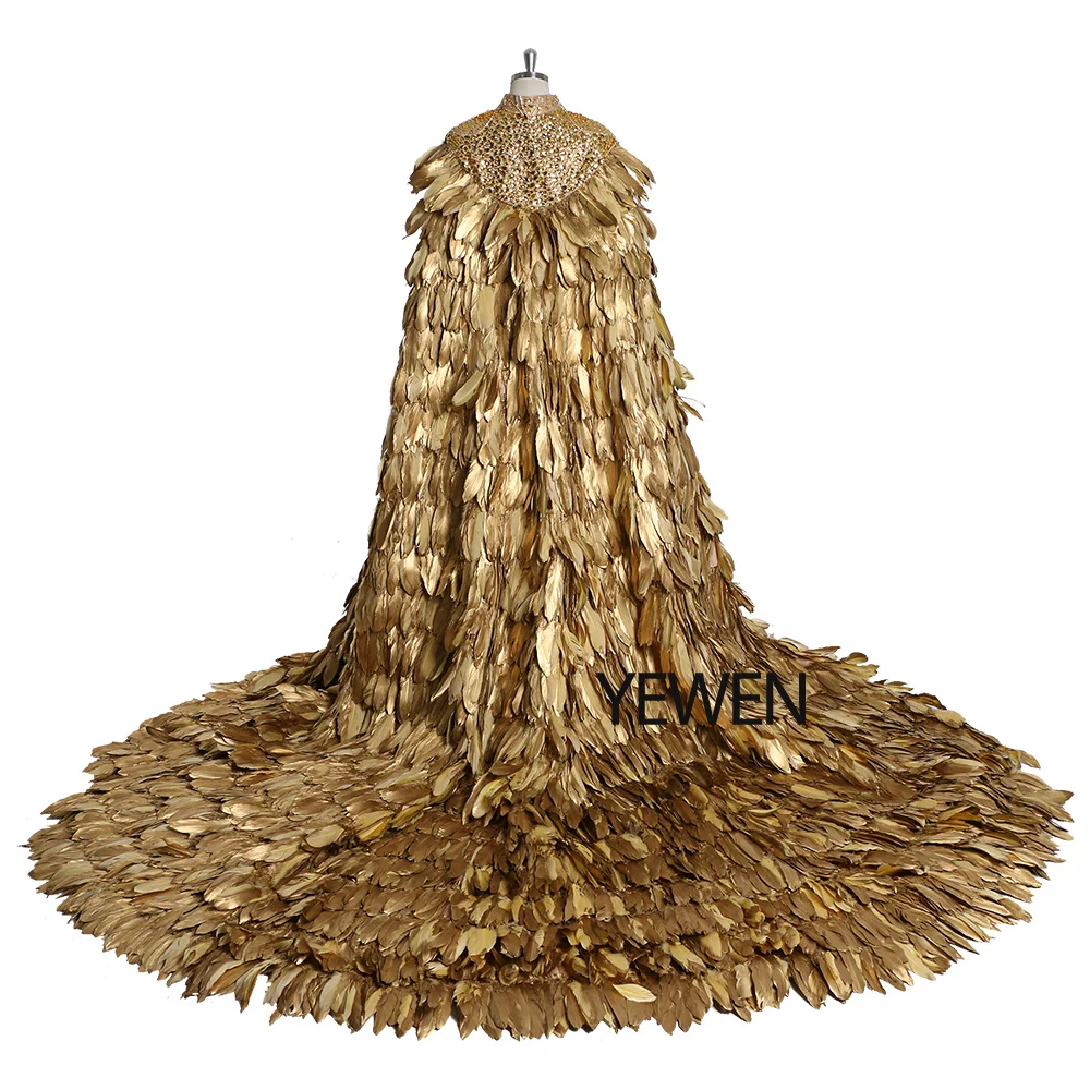 Yewen 1,5 м шлейф Золотое перо Свадебная накидка Кристалл высшее качество свадебное платье куртка 2021 Новинка