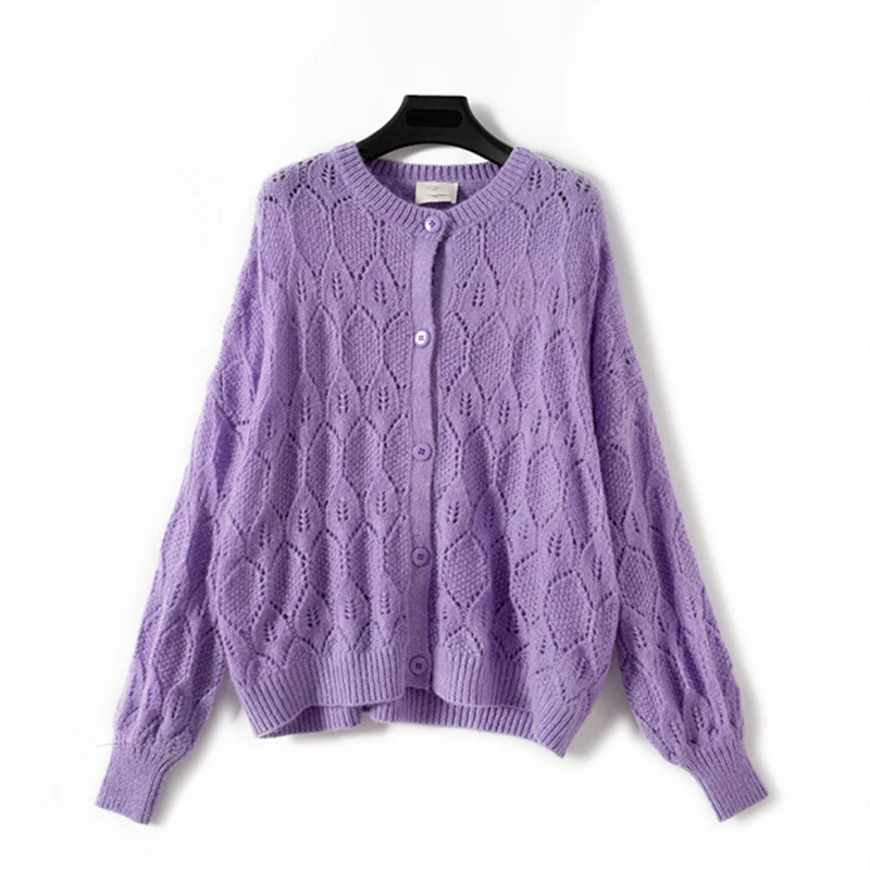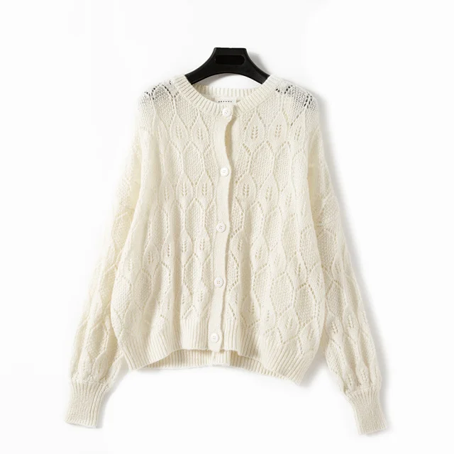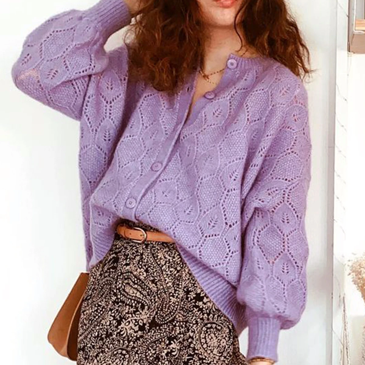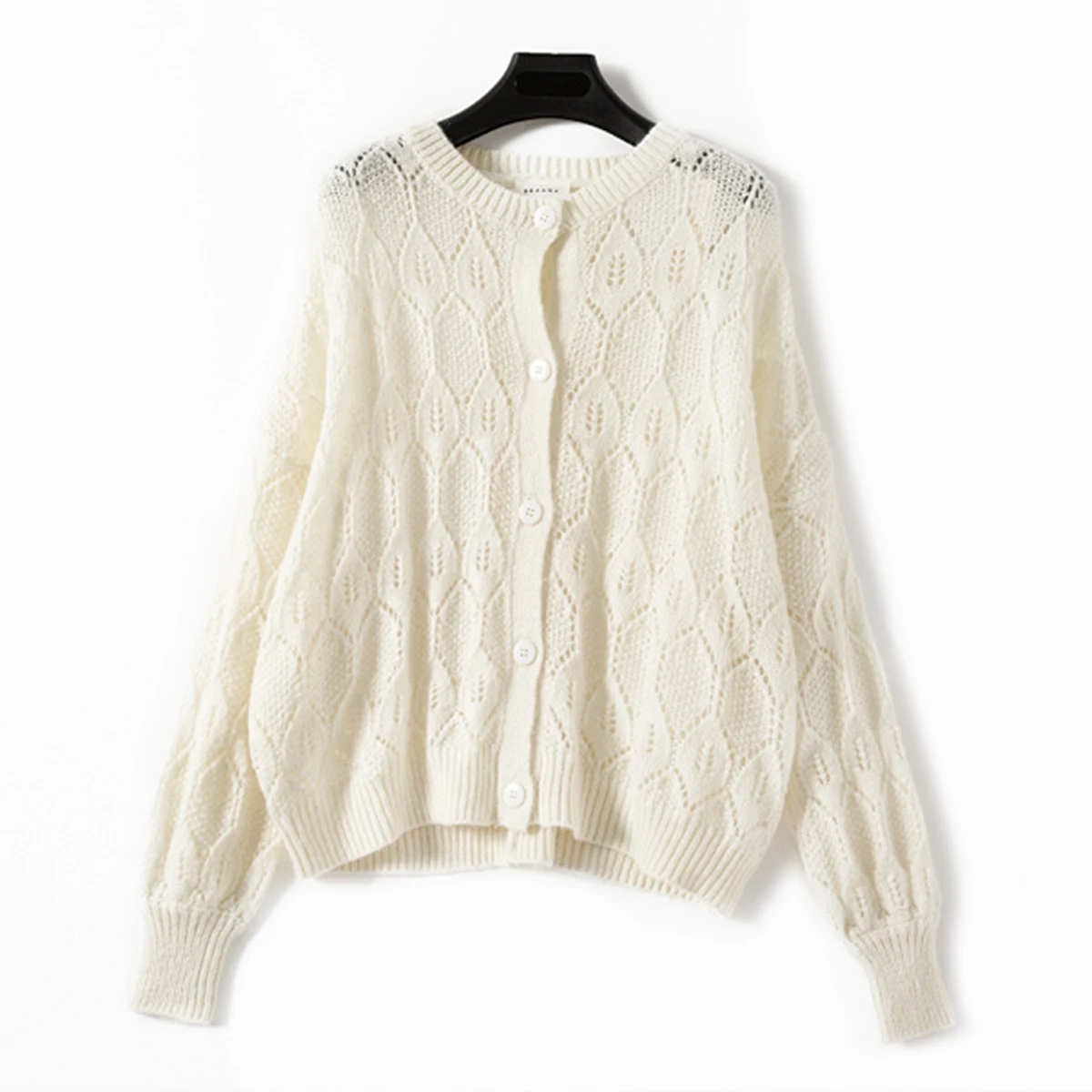 Женский вязаный кардиган с круглым вырезом, с пышными рукавами