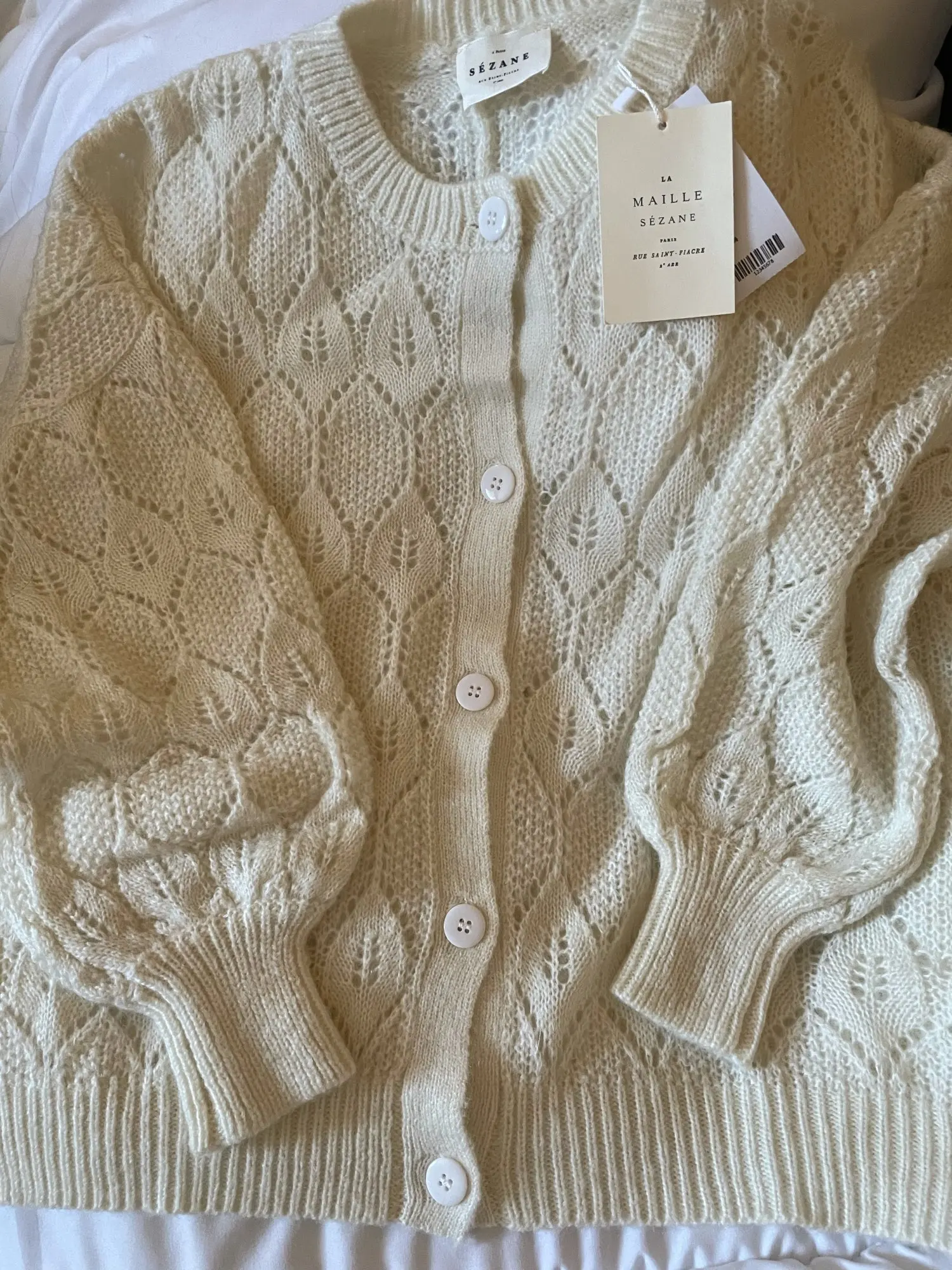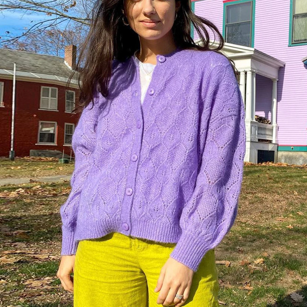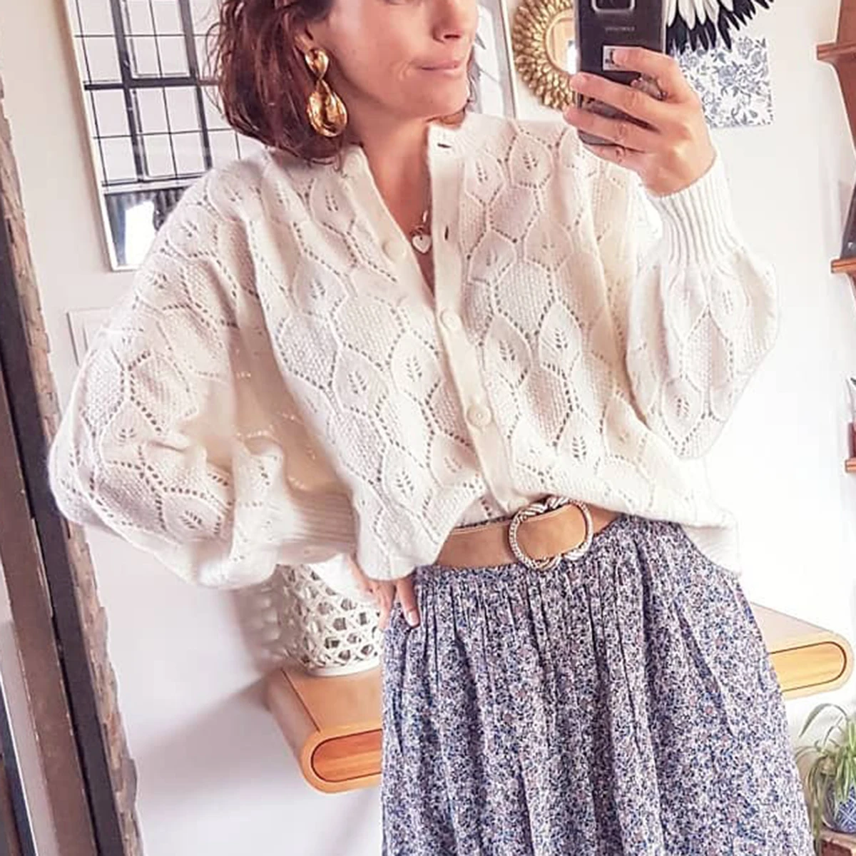 Женский вязаный кардиган с круглым вырезом, с пышными рукавами