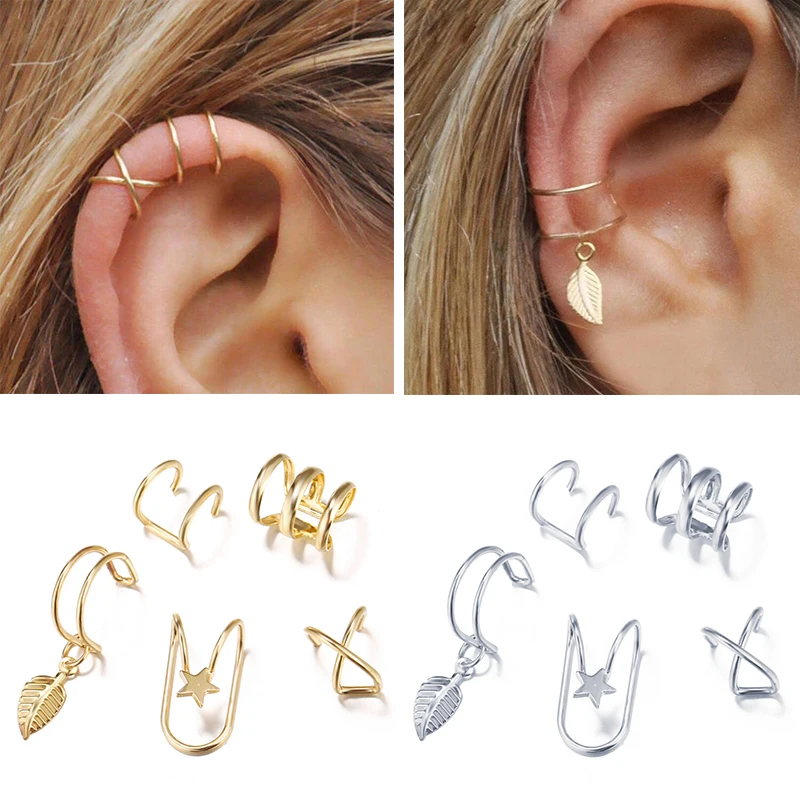 Каффы для ушей, серьги-клипсы в форме листьев, звезд, для женщин, имитация пирсинга, серьги, Надеваемые На ушной хрящ, Набор шпилек для ушей