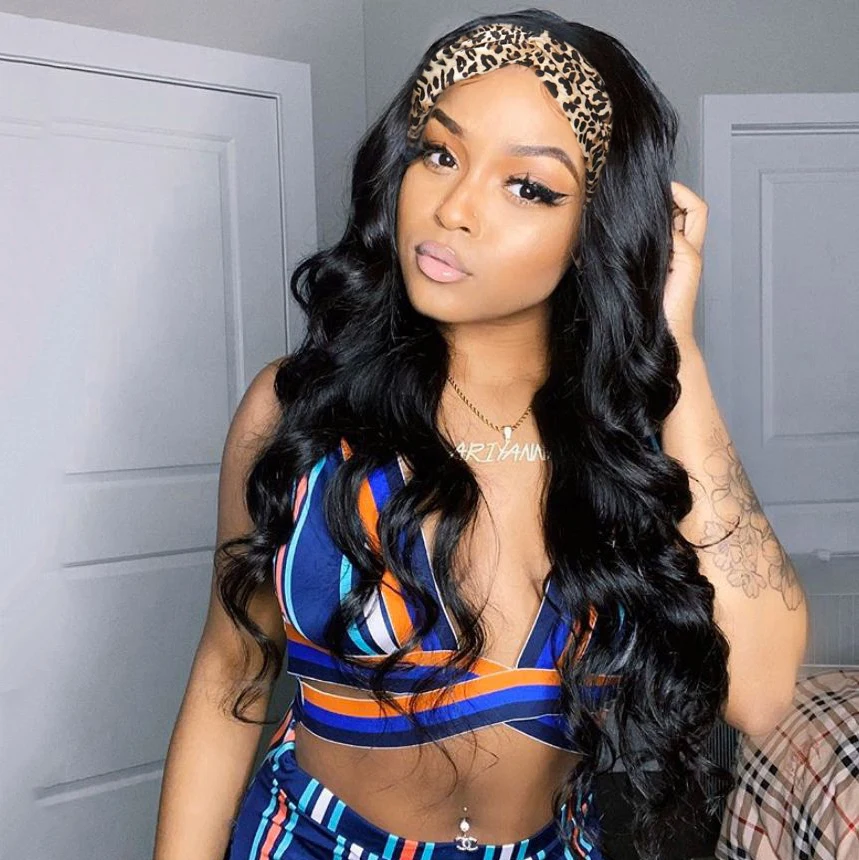 Glueless парик с головной повязкой 100% человеческие волосы парики Малайзия объемная волна человеческие волосы парик сцепление повязка манекен для шарфа парика человеческие волосы для черных женщин