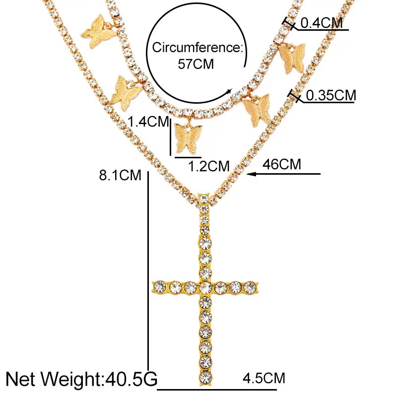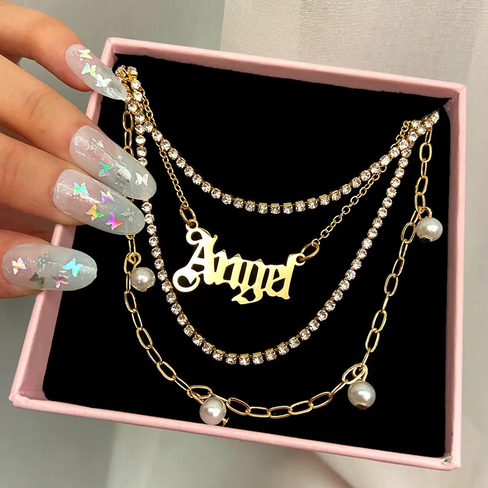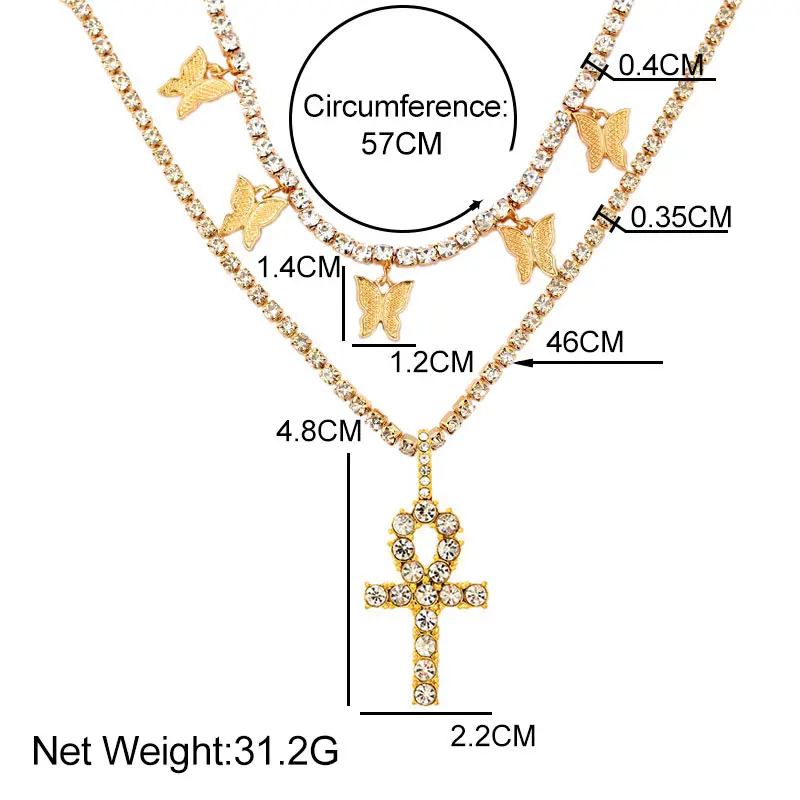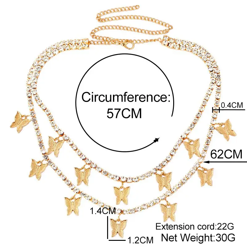 Цепочка Женская многослойная, с жемчугом и бабочкой, ювелирные украшения-хрустальные бабочки, 2 шт.