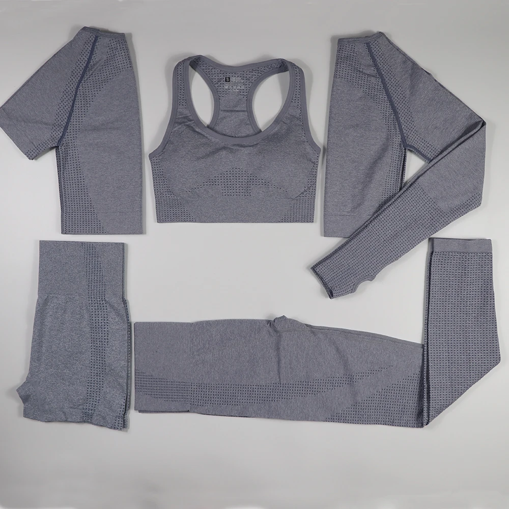 Комплект женский бесшовный для йоги, Топ с длинным рукавом, леггинс...
