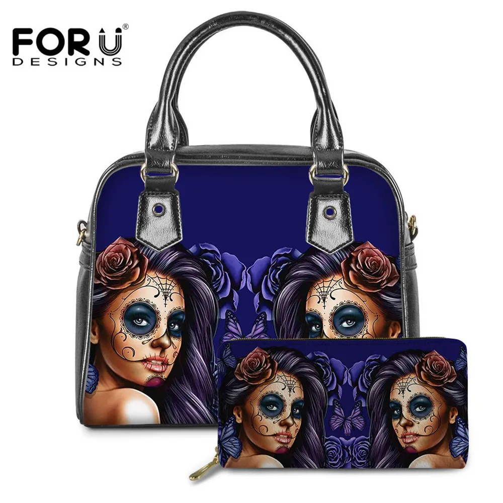 Новый трендовый Набор сумок и кошельков FORUDESIGNS, индивидуальная Женская сумочка с принтом в виде черепа фиолетового цвета, женская сумка на плечо