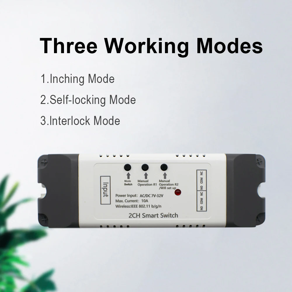 1. Автофиксацией/шаговым управлением режим: Включите канал 1 канал 1 будет автоматически закрыт после того, как 0,5-3600s. Канал 2 совпадает с каналом 1.2. Самоблокирующийся: как обычный переключатель 2 каналов, каждый канал может быть включен/выключен отдельно.3. Внутренний замок: Включите любой 1 канал, другие каналы будут выключены автоматически.