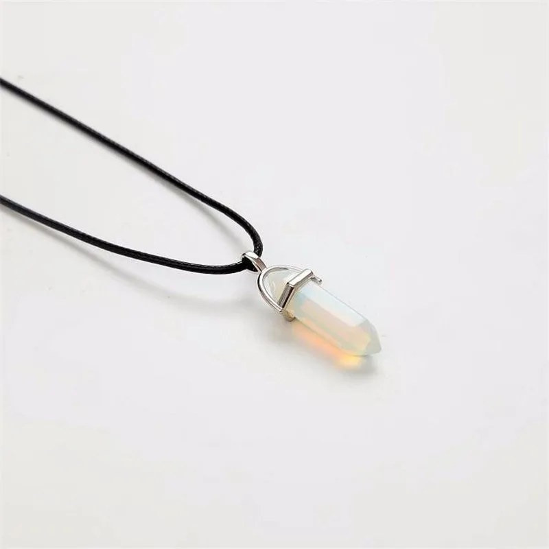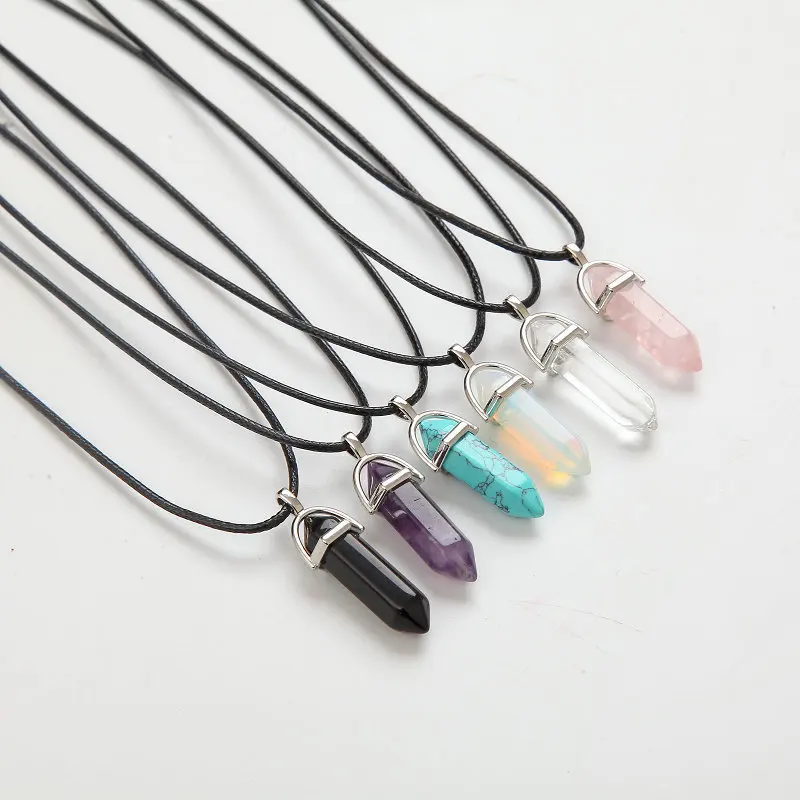 Ожерелье-цепочка из кожаного шнура, ожерелья с шестигранной колонной, подвески из натурального кристалла, ожерелья с кулоном из розового и белого камня для женщин