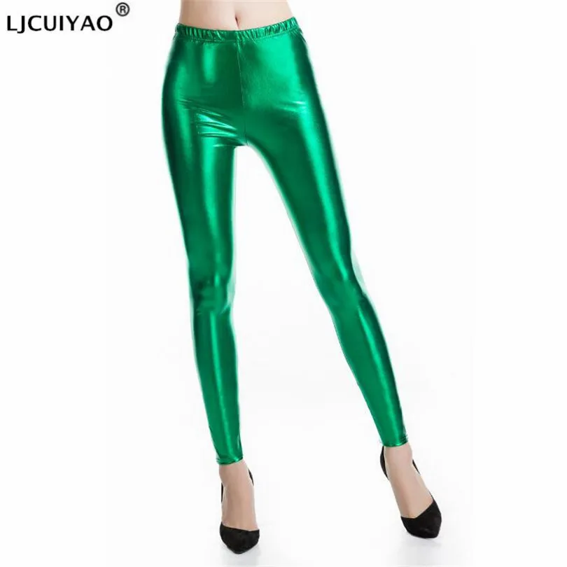Женские леггинсы для фитнеса LJCUIYAO, лазерные Светоотражающие штаны из искусственной кожи в стиле панк-рок, серебристые, золотистые, блестящие трикотажные штаны