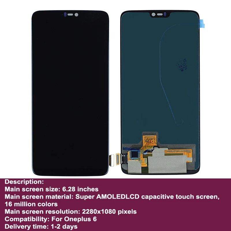 Дисплей Amoled 100% дюйма для Oneplus 6, ЖК-экран для Oneplus 6, ЖК-кодирующий преобразователь сенсорного экрана в сборе, 6,28 протестированный, оригинал