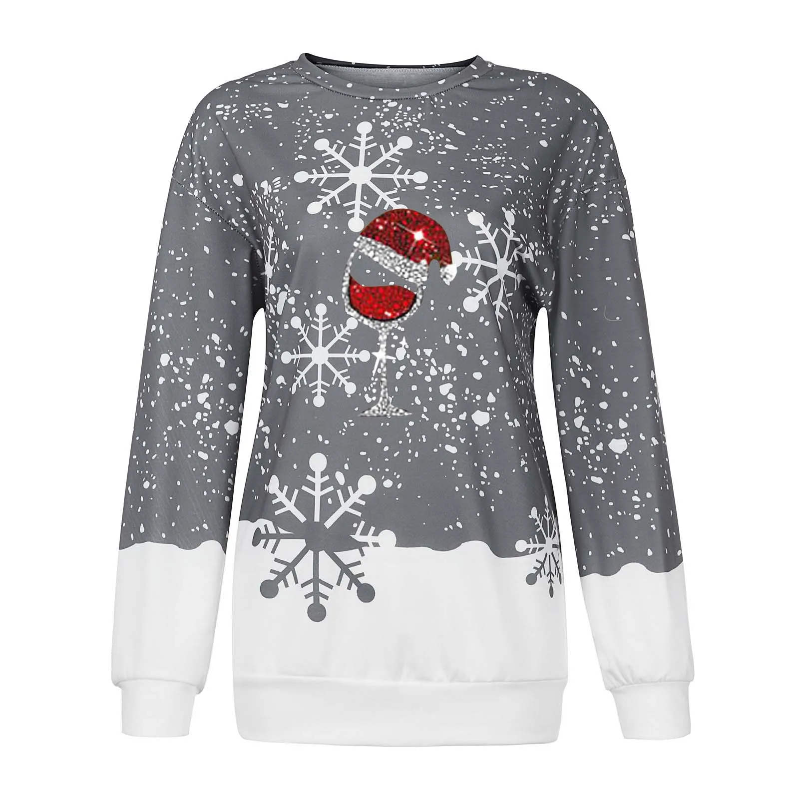 Рождественские Женские повседневные толстовки с длинным рукавом, св...