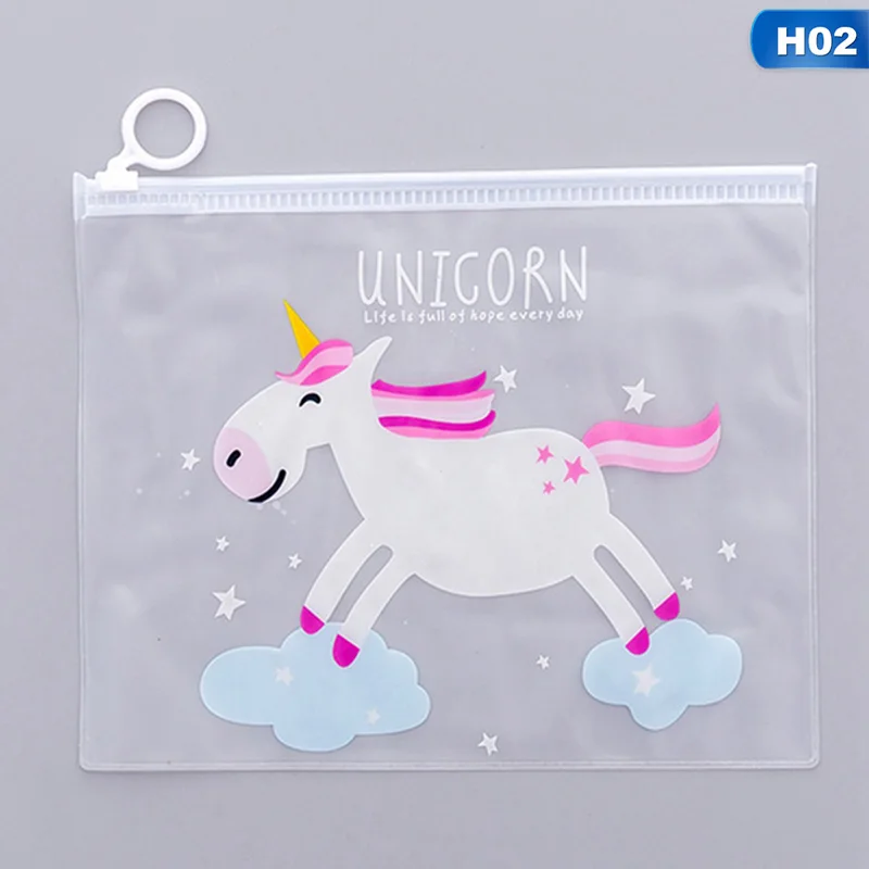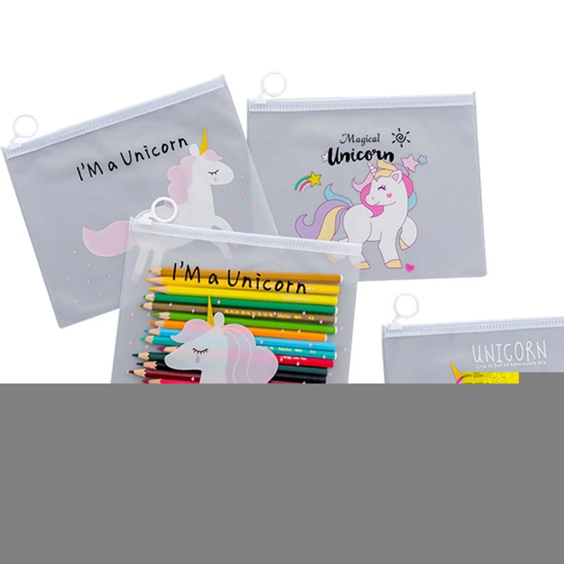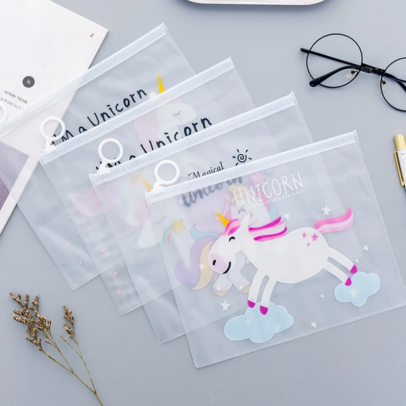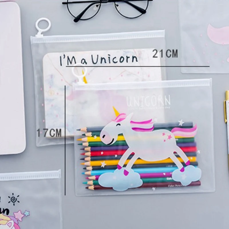 Прозрачная ПВХ Сумка для документов с мультяшным единорогом, папка для файлов, канцелярский органайзер, чехол для карандашей, школьные и офисные принадлежности