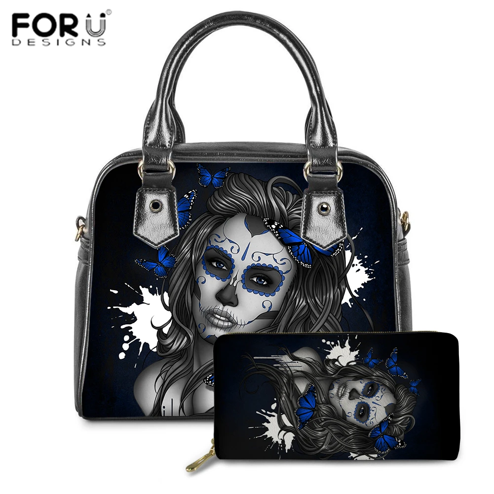 Комплект женских тоутов FORUDESIGNS из 2 предметов, модная женская сумка-мессенджер с рисунком мексиканской фурнитуры, сумка-кошелек