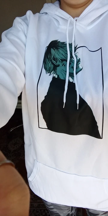 Качество худи не очень хорошее, оно изготовлено из очень тонкой, почти прозрачной ткани. Голова канеки зеленая, а не черная (я не знаю почему). Хорошо сидит (размер L). В целом я бы не сказал, что доволен полученным товаром.