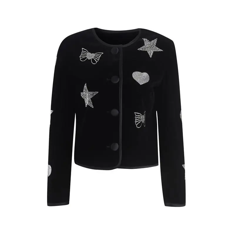 Осенне-зимний новый свитер с круглым вырезом, женский свободный кардиган с длинными рукавами, украшенный бусинами и стразами, с бантом и рисунком звезды, темпераментный свитер