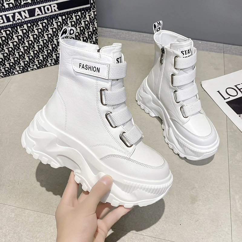 Кроссовки женские на платформе, Вулканизированная подошва, высокие, дышащие, толстая подошва, массивные