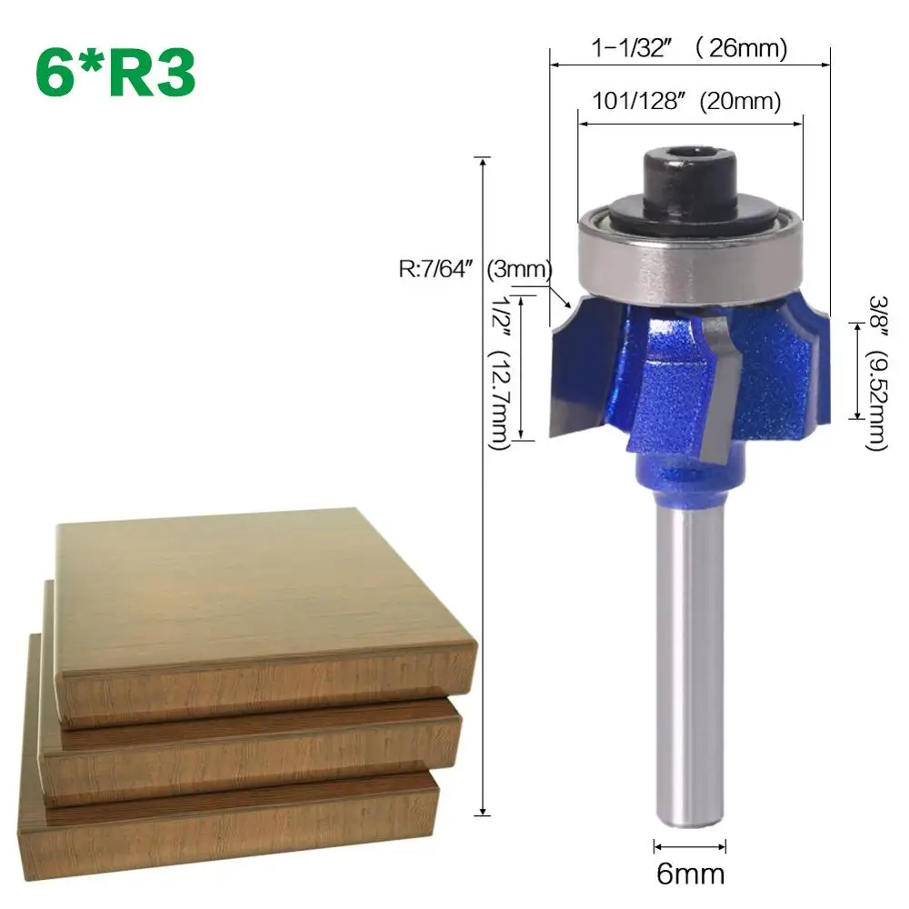 Фреза по дереву с хвостовиком 6 мм, хвостовик 14 дюйма, R1mm R2mm R3mm, обрезка ножа, кромка, триммер, 4 зубца, фреза по дереву, углеродистая сталь, 1 шт.