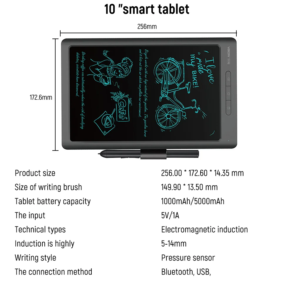 Размер смарт-ноутбука: 261*210*10 ммЕмкость аккумулятора: 460 мАчВход: 5 В/1 АВремя зарядки: около 2-3 часовВремя использования: около 24 часов непрерывного письмаПамять: около 8 часов непрерывного письмаРазмер стилуса: 157,0*14,55 ммЕмкость аккумулятора: 80 мАчВход: 5 В/1 АВремя зарядки: около 1-2 часовВремя использования: около 200 часов непрерывного письмаТип технологии: Электромагнитная индукцияРазмер бумаги: A5Максимальная толщина бумаги: 15 ммСпособ подключения: Bluetooth 4,0/USB