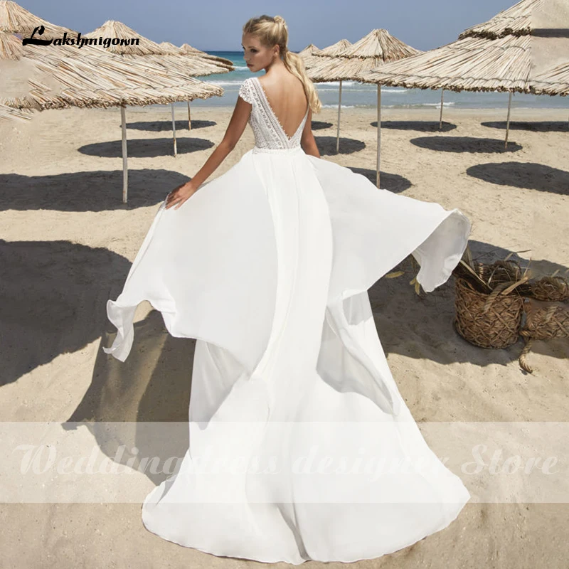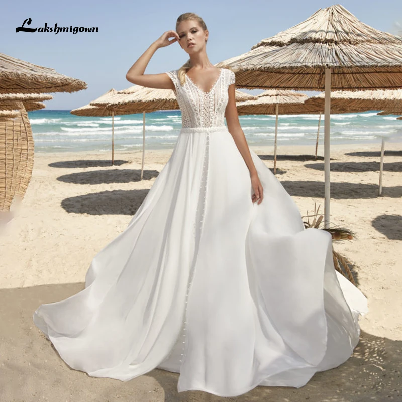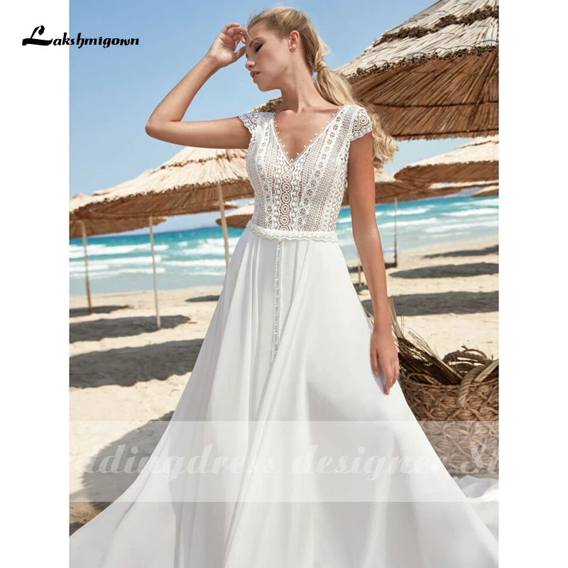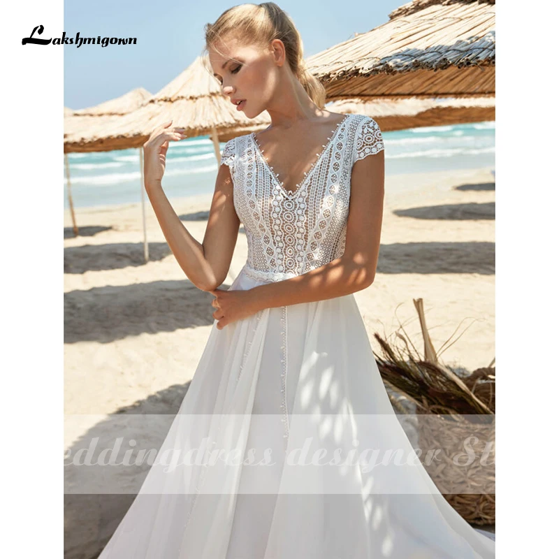 Lakshmigown кружевное богемное свадебное платье 2021, v-образный вырез, открытая спина, размера плюс Бохо пляжное шифоновое платье трапециевидной формы свадебное платье vestido de novia