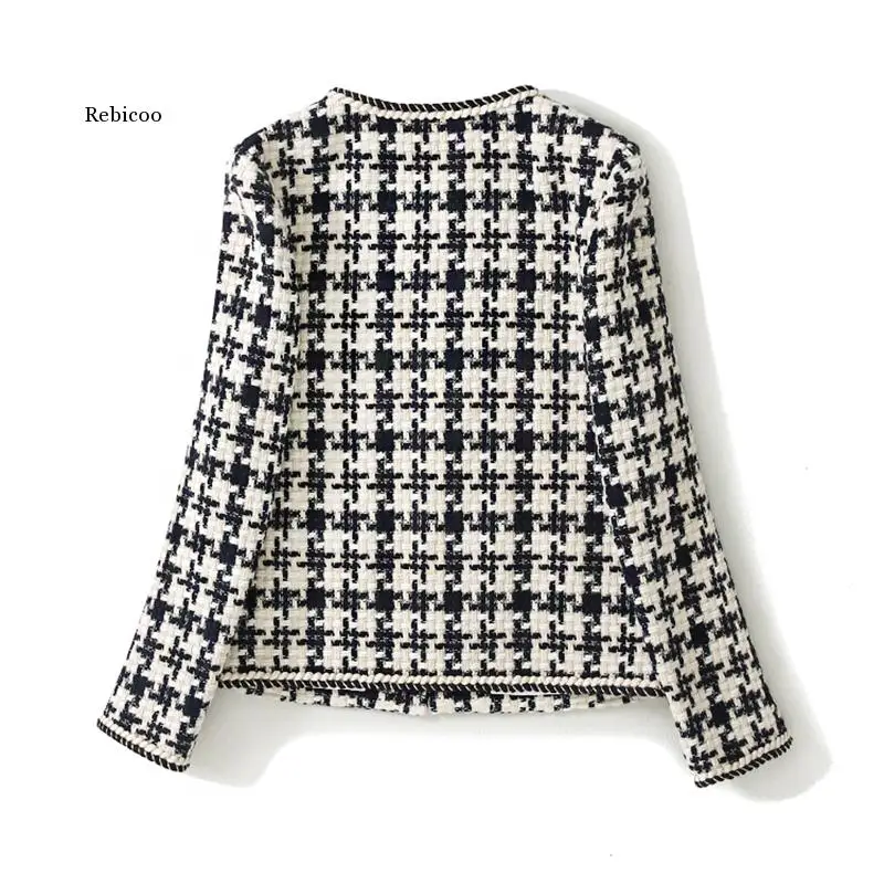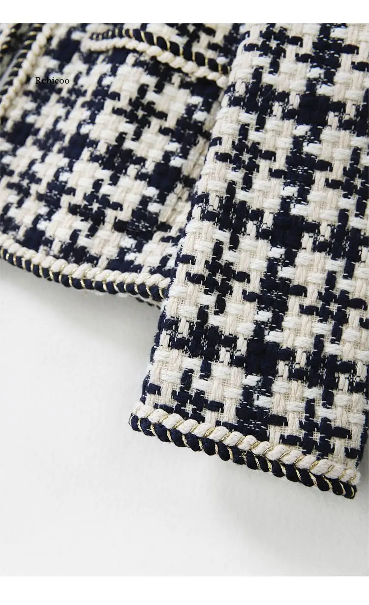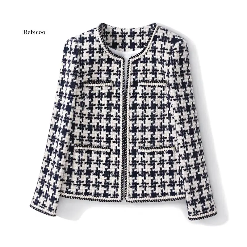 Твидовая куртка в темно-синюю клетку, веснаосеньзима, Женская куртка с лацканами и длинным рукавом, деловая Женская цельная куртка, пальто