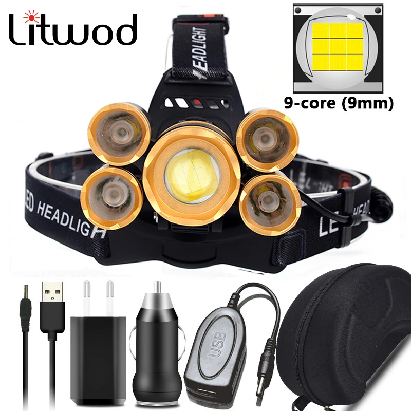 Мощный светодиодный налобный фонарь, налобный фонарь с 5 светодиосв...