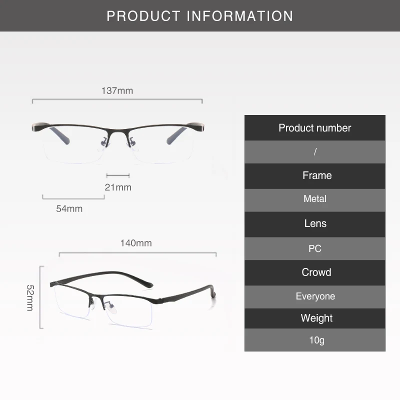 Очки в полуоправе для близорукости для мужчин и женщин, металлическ...