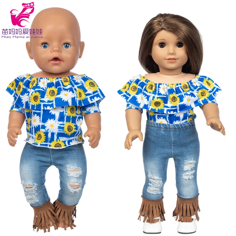 43 см для ухода за ребенком для мам Одежда для детей, детская мода Кукла Одежда Футболка с изображением подсолнуха обтягивающие джинсовые брюки 18 дюймов Кукла для девочек одежда с кисточками джинсовые брюки для маленьких девочек подарок