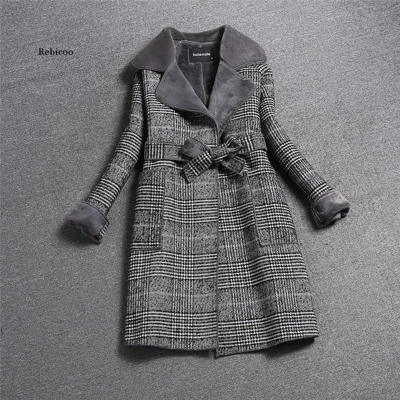 Пальто женское Шерстяное, с отложным воротником, Осень-зима
