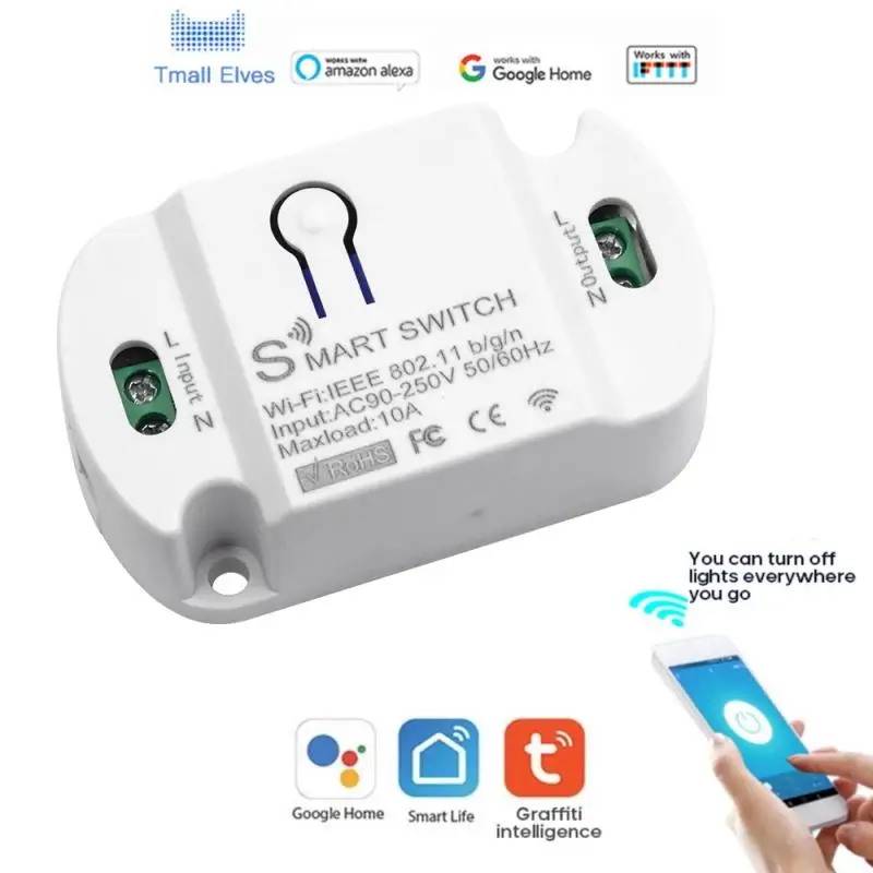 Умный переключатель Wi-Fi, 10 А, модуль беспроводного переключателя, таймер для автоматизации умного дома, дистанционное управление через приложение Tuya, работа с Alexa, Google Home