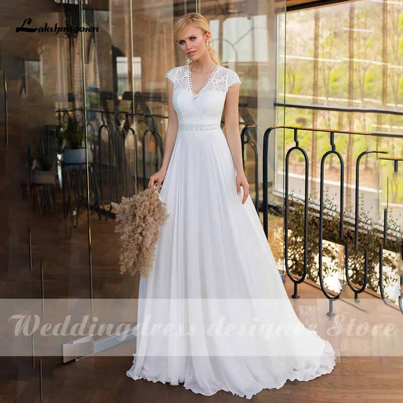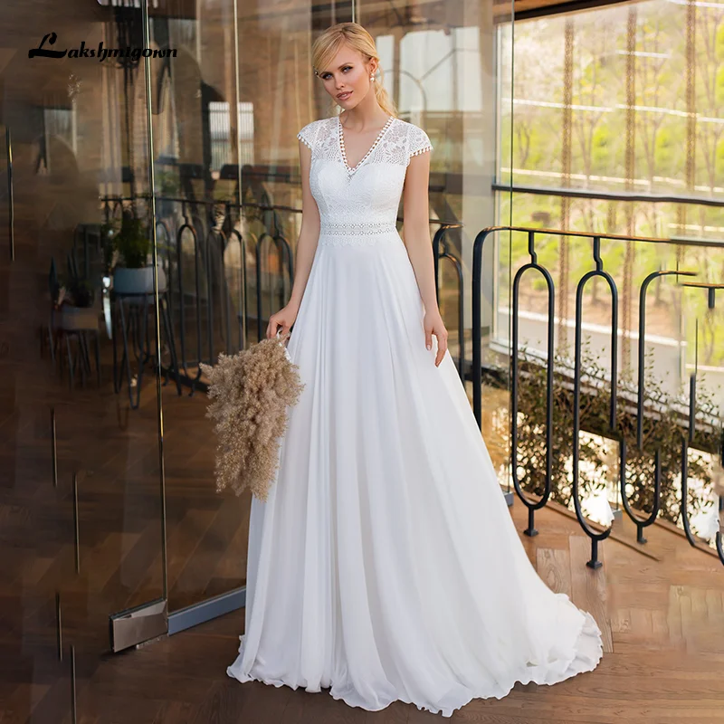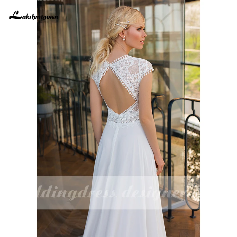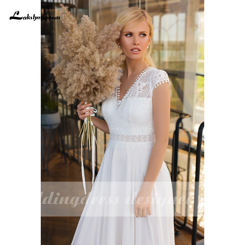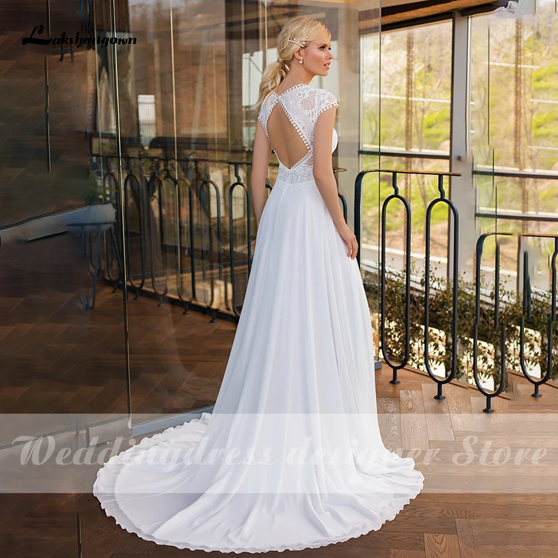 Женское кружевное свадебное платье Lakshmigown, длинное шифоновое платье с открытой спиной и V-образным вырезом, лето 2021
