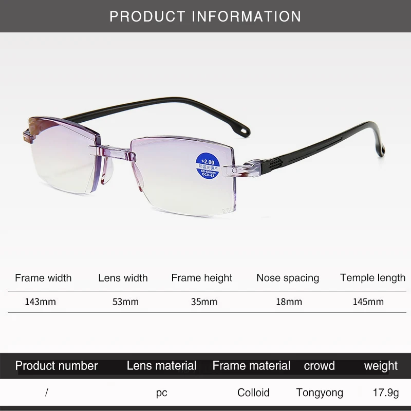 Очки для чтения без ободков с диоптриями + 150 + 200